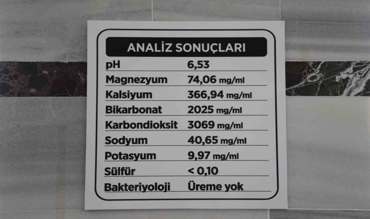 Suda eşit değerin üzerinde sağlıkta kullanılacak çok önemli minerallerin olduğunu kaydeden Şerefoğlu, ‘’Bunun başında karbonat, magnezyum, kalsiyum, flüorür ve çözülmüş karbondioksit bu suyun içerisinde bulunduğu için antimikrobiyal bir su oluyor. Bu suyun içerisinde bakterinin çoğalması mümkün değil. Bu nedenle bizim suyu kullanan ve cilt problemi olan vatandaşlarımız çok memnun kaldı. Sağlık Bakanlığı tarafından bu su izinlidir. Biz bu suyu Sağlık Bakanlığından aldığımız izinden dolayı içirebiliyoruz. Bu su içildiğinde bağışıklık sistemini güçlendiriyor. Cilt hastalıklarının çok büyük bölümünde ve özellikle bağırsak sorunlarına bire bir geliyor. Yapılan araştırmalarda zaten bu dediklerimizin hepsi tespit edildi. Bu su ağız içindeki yara ve aftları günlük birkaç defa içildikten sonra temizliyor. Boğazda biraz daha uzun sürüyor nedeni de suyu ağızda tuttuğumuz gibi boğazda tutamamamızdır. İnsanların günlük olarak 2 buçuk litreden az bir su içmelerini önermiyoruz. Burada özel odalarımız var. Bu suyu her yerde rahat bir şekilde dolaştıramıyoruz çünkü oksijenle temas ettiğinde çökermeler meydana geliyor. Biz bu hastalarımız için özel odalar hazırladık. Sadece onları kullandırıyoruz ki hem hijyen olsun hem de rahatsız olmasınlar. Biz bu tedavi sürecini de hemşire eşliğinde yapıyoruz’’ şeklinde konuştu.
