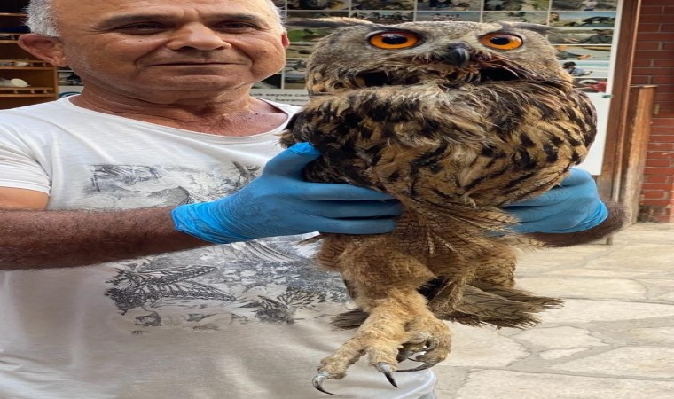 Aydın’ın Kuşadası ilçesinde bitkin ve yaralı halde bulunduktan sonra tedavisi tamamlanan Puhu kuşu (Bubo bubo türü baykuş) doğaya salındı.