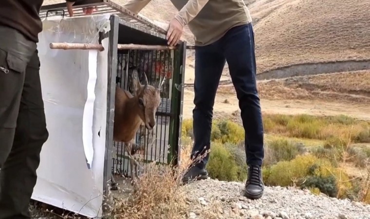 Hakkari’de sınır hattında askerler tarafından bitkin halde bulunarak Van’da koruma altına alınan yavru yaban keçisi, 2 aylık tedavisinin ardından doğal ortamına bırakıldı.