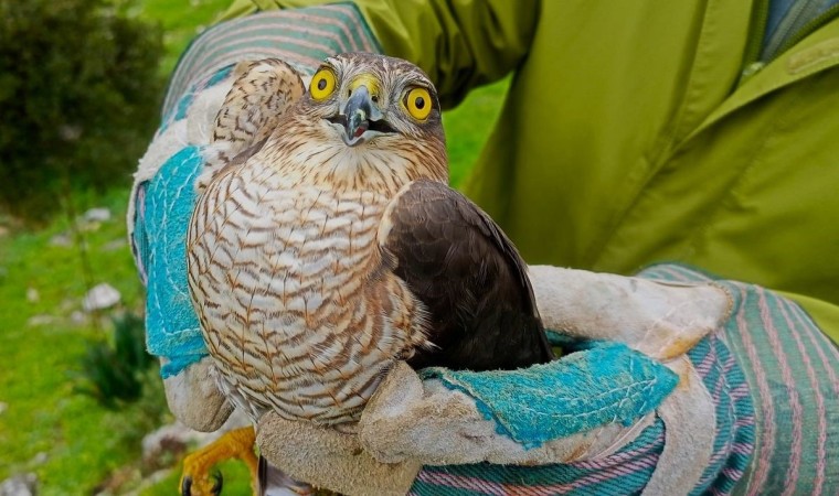 Aydın’ın Kuşadası ilçesinde bir vatandaş tarafından bulunan Atmaca türü yırtıcı kuş tedavisinin ardından doğaya bırakıldı.