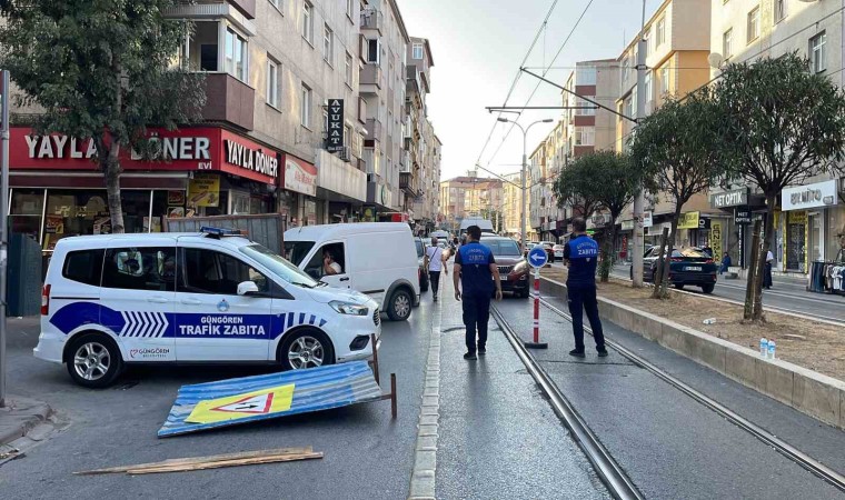 Güngören Mareşal Çakmak Mahallesi’nde bulunan Soğanlı Tramvay durağının arkasında bulunan binanın kentsel dönüşüm çerçevesinde yıkım çalışmasına geçtiğimiz hafta başlanmıştı. Çalışmalar devam ederken çevrede güvenlik önlemi alındığı ancak İstanbul Büyükşehir Belediyesi T1 Kabataş-Bağcılar Tramvay hattındaki Soğanlı-Bağcılar arasındaki seferlerinin riskli olmasına rağmen devam ettiği görüldü. Zabıta ekipleri araçların geçişine izin vermezken, tramvayların riskli yerden geçtiği görüldü.