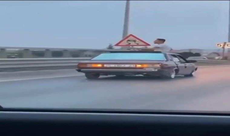 Eskişehir-Ankara kara yolu üzerinde bir vatandaş tarafından cep telefonu kamerası ile çekilen görüntüler akıllara durgunluk verdi. Çevreyolu üzerinde hızla giden otomobilin üst camından dışarı çıkan şahıs, hem kendisini hem de trafiği tehlikeye soktu. Elindeki içecek şişesiyle birlikte camdan çıkarak hızla giden otomobilin üstünde yolculuğa devam eden şahıs, görenlerden tepki topladı.