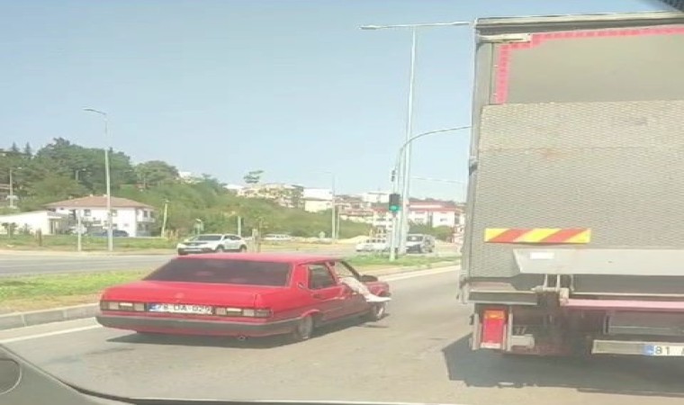 Diğer olayda ise Atatürk Bulvarı Namal Kavşağı mevkisinde otomobilin ön yolcu koltuğunda oturan bir kişinin ayağını camdan çıkararak seyahat etmesi de pes dedirtti. İki olayda diğer sürücüler tarafından cep telefonu kamerasıyla görüntülendi.
