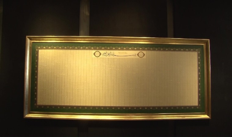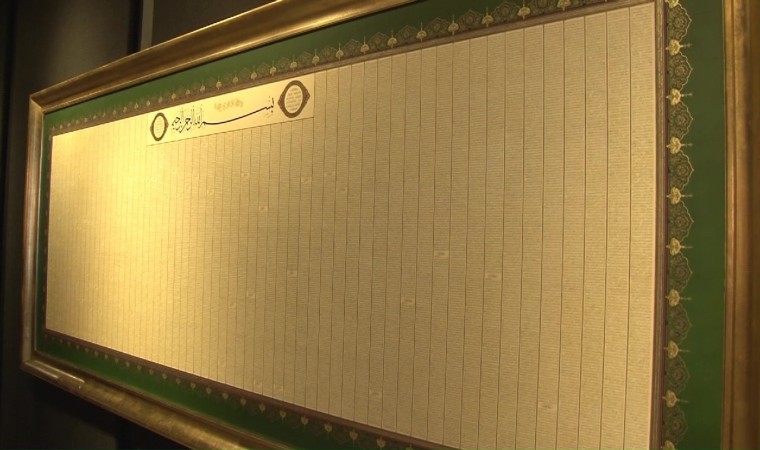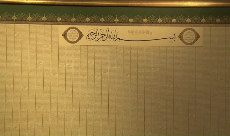 Üsküdar’da hattat ve tezhip sanatçıları tarafından Kur’an-ı Kerim ayetleri tek levha üzerine yazıldı. 6 bin 236 ayetin yer aldığı, 3 metre 20 santimetreye 1 metre 20 santimetre ebatlarında olan tablo görenleri hayran bıraktı.
