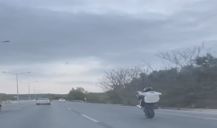 Bursa Mudanya Yolu merkez istikamet üzerinde seyir halindeki bir motosiklet sürücüsü yaptığı hareketle yürekleri ağza getirdi. Anayolda ilerleyen motosikletli tek teker üzerinde kilometrelerce seyretti. Hem kendinin hem de trafikteki diğer vatandaşların canını hiçe sayan sürücü, trafikteki diğer sürücülerin kamerasına yansıdı.