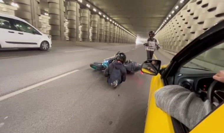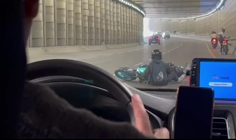 Yine yolcunun kayıtta olduğu esnada Konak Alt Geçidi’nde tek teker üstünde ilerleyen motosiklet sürücüsü, bir anda direksiyon hakimiyetini kaybetti ve motosiklet devrildi. Anbean cep telefonu kamerasına yansıyan kazanın ardından, motosikletle birlikte metrelerce sürüklenen sürücünün yardımına yine diğer motosikletli arkadaşları koştu. Düşmenin etkisiyle yaralanan sürücü, arkadaşları tarafından hastaneye kaldırıldı.