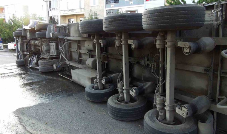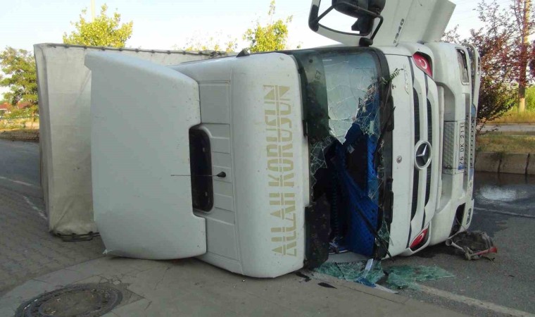 Bitlis’in Ahlat ilçesinde tekeri patlayan tırın yola devrilmesi sonucu sürücü yaralandı.