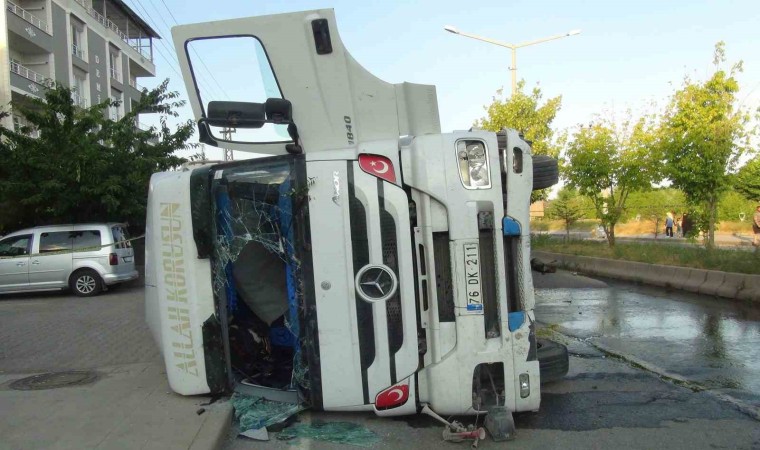 Edinilen bilgiye göre, Adilcevaz’dan Tatvan istikametine seyir halinde olan C.B. yönetimindeki 76 DK 211 plakalı matbaa malzemelerinin yüklü olduğu tır, Ahlat ilçesi Devlet Bahçeli Bulvarı’nda tekerinin patlaması sonucu devrildi. İhbar üzerine olay yerine polis, itfaiye ve sağlık ekipleri sevk edildi. Ekipler çevrede güvenlik önlemi alırken, yol tek yönlü olarak trafiğe kapatıldı. Sağlık ekiplerince olay yerinde ilk müdahalesi yapılan yaralı sürücü C.B., Ahlat Devlet Hastanesine kaldırıldı.
