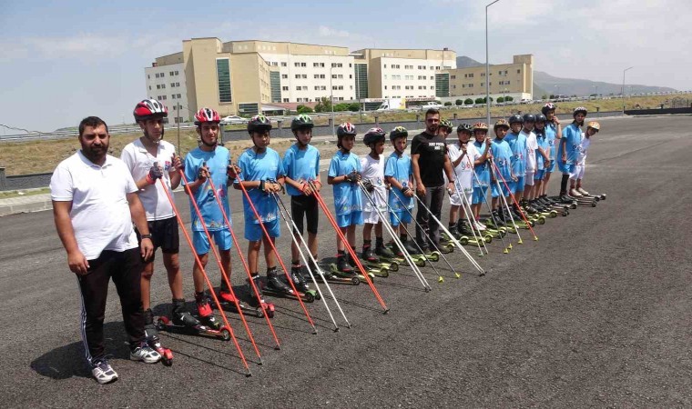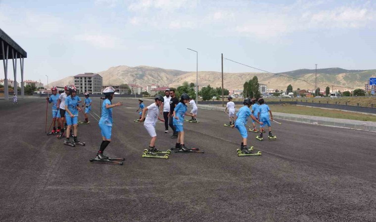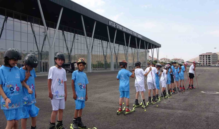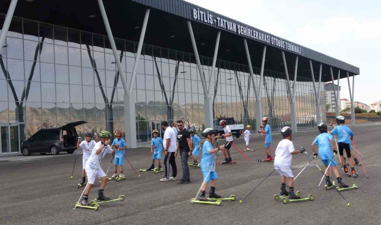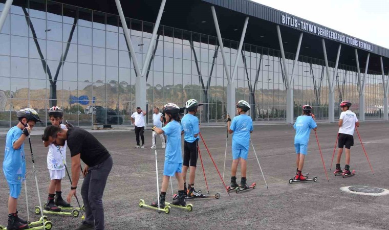 Bitlis’teki tekerlekli kayak sporcuları, önümüzdeki ay açılışı gerçekleşecek olan otogarın park alanında çalışmalarını sürdürüyor.