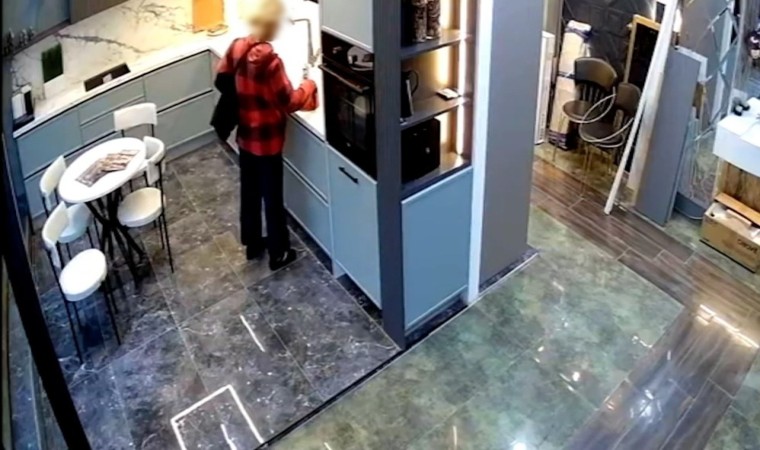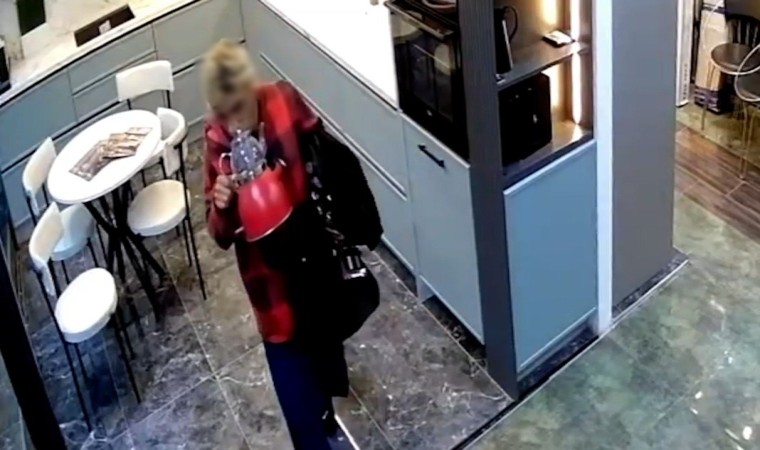 Tekirdağ’da bir mağazaya giren kadın şahıs, gözüne kestirdiği çaydanlığı koklaya koklaya çaldı.