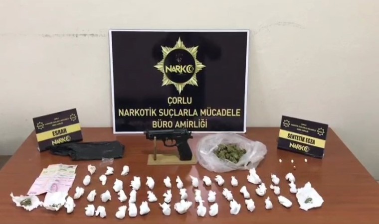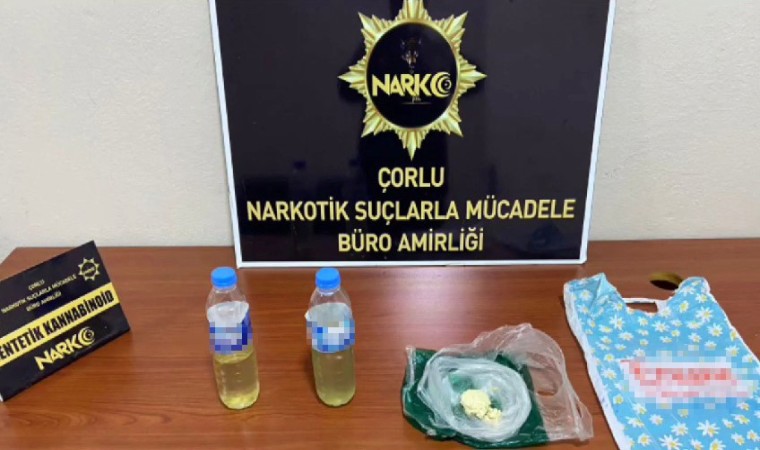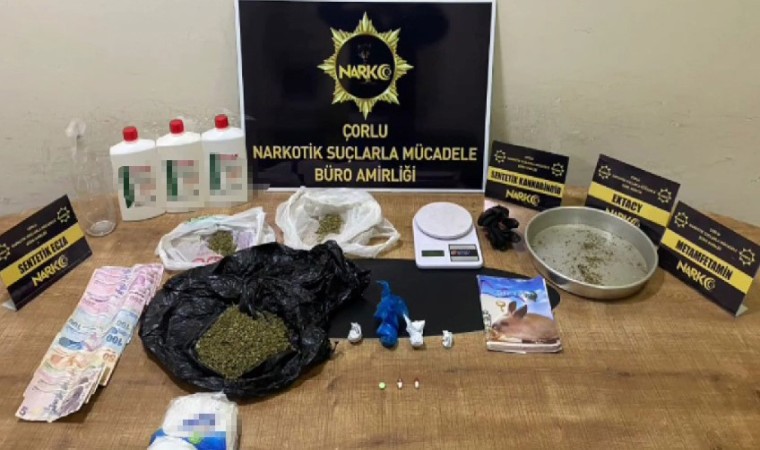 Tekirdağ İl Emniyet Müdürlüğü Narkotik Suçlarla Mücadele Şube Müdürlüğünce yapılan günlük ve planlı çalışmalarda Malkara, Çerkezköy, Çorlu ve İstanbul Çekmeköy ilçesinde 10 adrese operasyon düzenlendi. 10 ayrı ikamet aramalarında, 552 gram sıvı halde sentetik kannabinoid maddesi üretiminde kullanılan kimyasal madde, katı halde 37,50 gram sentetik kannabinoid maddesi üretiminde kullanılan A-M kimyasal ham madde, 71,9 gram sentetik kannabinoid, uyuşturucu madde üretiminde kullanılan 1 adet sprey ve 3 adet kutu içerisinde aseton maddesi, 790 adet sentetik ecza hap, 141 gram esrar, 3 fişek halinde 2 gram metamfetamin, 66 adet gümrük kaçağı içki ve 23 paket gümrük kaçağı sigara, 1 adet ecstasy hap, 1 adet hassas terazi, 1 adet tabanca ve suçtan elde edildiği değerlendirilen 3 bin 145 TL para ele geçirildi.