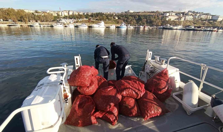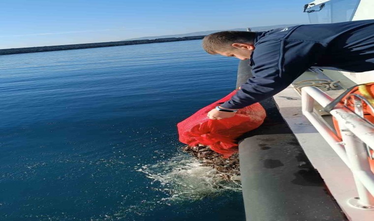 Tekirdağ’da ele geçirilen 1,5 ton karakıllı midyesi denize bırakıldı.