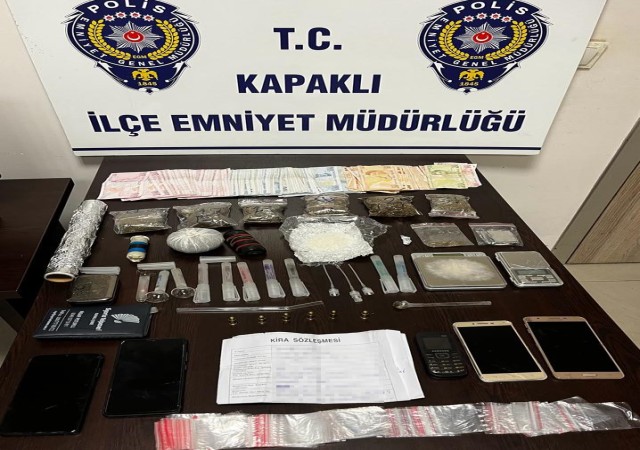Tekirdağ Kapaklı İlçe Emniyet Müdürlüğü ekipleri, uyuşturucu ticareti yapan şahıslara yönelik operasyon düzenledi. Bir işyerinde gerçekleştirilen baskında para ve uyuşturucu madde ele geçirildi. Gece operasyonunda 6 şüpheli gözaltına alındı, 2'si tutuklandı. Cumhuriyet Mahallesindeki boş bir dükkanda yapılan operasyonda uyuşturucu ticaretinden elde edildiği düşünülen para, bonzai, metanfetamin ve diğer malzemeler ele geçirildi. Gözaltına alınan şüpheliler polis karakoluna götürüldü ve ardından adliyeye sevk edildi. E.T. ve F.G. tutuklanırken, diğer şüpheliler tutuksuz yargılanmak üzere serbest bırakıldı.