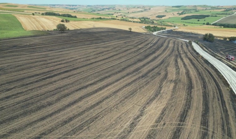 Tekirdağ’ın Süleymanpaşa ilçesinde çıkan yangında 200 dönüm anız alan yandı.