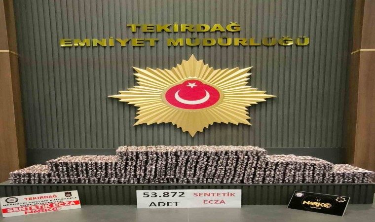 Tekirdağ İl Emniyet Müdürlüğü Narkotik Suçlarla Mücadele Şube Müdürlüğü ekipleri tarafından Süleymanpaşa ilçesi otobüs terminalinde düzenlenen operasyonda, H.A. isimli şahsın üzerinde yapılan aramalarda tam 53 bin 872 adet sentetik ecza maddesi ele geçirildi. Şahıs uyuşturucu madde ticareti yapma suçundan tutuklanarak cezaevine gönderildi.