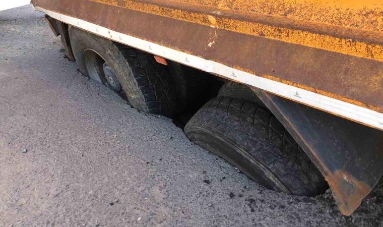 Tekirdağ’ın Çorlu ilçesinde hafriyat kamyonun geçişi esnasında asfalt yol çöktü. Çukura saplanan kamyon, iş makineleri vasıtasıyla kurtarıldı.