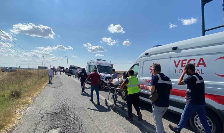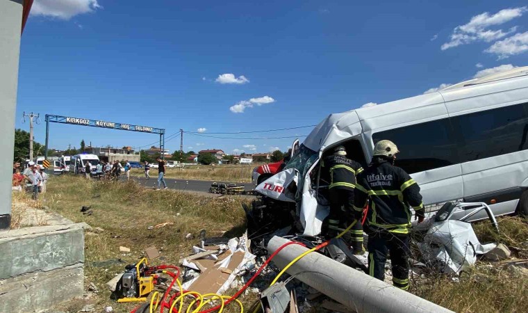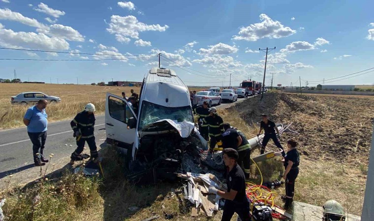 Kaza, Esenler yolu Kırkgöz Mahallesi girişinde meydana geldi. İşçileri fabrikaya bırakmak üzere yola çıkan Mustafa A. idaresindeki 59 S 0314 plakalı servis minibüsü, Esenler Mahallesi istikametinden Kırkgöz istikametine seyrederken sürücünün direksiyon hakimiyetini kaybetmesi sonucu yoldan çıkarak elektrik direğine çarptı. Hurdaya dönen minibüsteki sürücü Mustafa A. ve 6 kişi yaralandı. Can pazarı yaşanan kazada olay yerine çok sayıda ambulans sevk edildi. Araçta sıkışan minibüs şoförü Mustafa A., itfaiye kaza kırım ekibi tarafından sıkıştığı yerden kurtarıldı. Yaralılar, sağlık ekiplerinin ilk müdahalesi sonrası ambulanslarla Çorlu’daki devlet ve özel hastanelere sevk edildi.