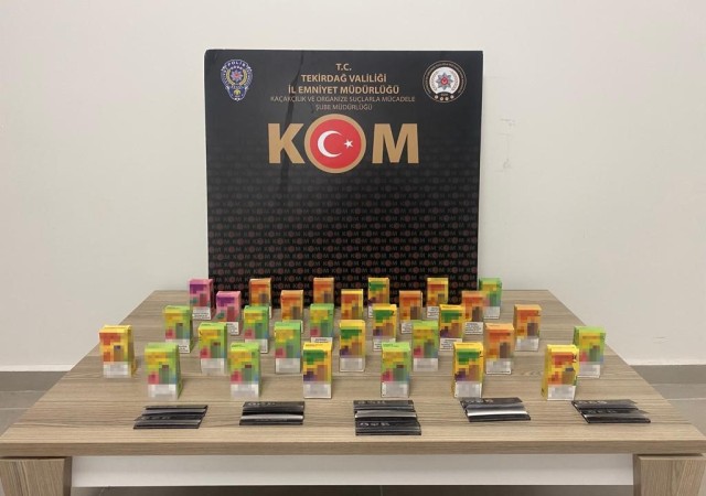 Tekirdağ'ın Çerkezköy ve Süleymanpaşa ilçelerinde gerçekleştirilen operasyonda, kaçak elektronik sigara ve makaronlar ele geçirildi. Tekirdağ İl Emniyet Müdürlüğü KOM Şubesi ekipleri, yasadışı tütün ve tütün mamulleri satışını engellemek ve suçluları tespit etmek amacıyla çalışmalarını sürdürüyor.