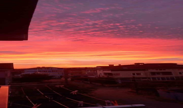 Tekirdağ’ın Muratlı ilçesinde gün batımında kızıl renge bürünen gökyüzü kartpostallık görüntüler ortaya çıkardı.