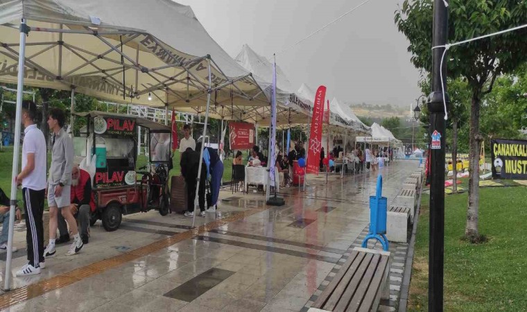Şiddetli yağmur nedeniyle seyyar satıcılar zor anlar yaşarken, festival için kurulan çadırlarda satış yapan esnaf da etkilendi. Festival alanındaki esnaf, yağışın kesilmesiyle yağmur sularını temizledi.