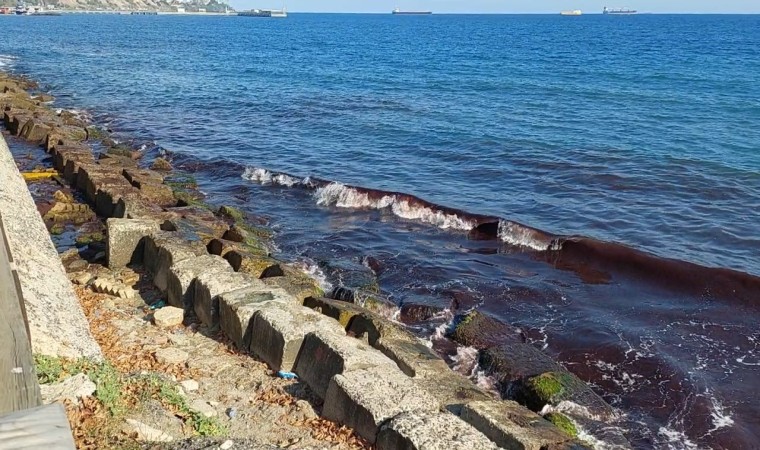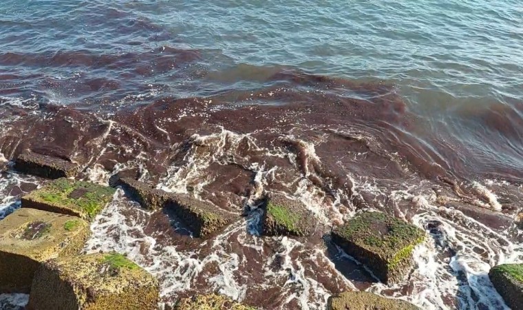Marmara Denizi’nin Tekirdağ kıyıları, lodosun getirdiği kızıl yosunlarla adeta kızıla boyandı.