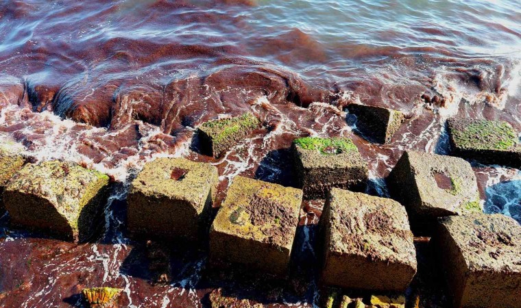 İki gündür etkili olan lodos nedeniyle Tekirdağ’ın Süleymanpaşa ilçesi kıyılarında kızıl yosun birikintileri meydana geldi. Sahili kaplayan bu yosunlar, yer yer denizin rengini kırmızıya boyadı.