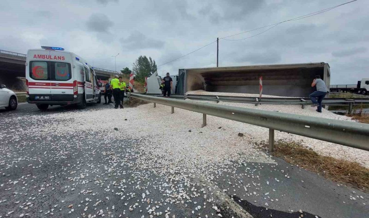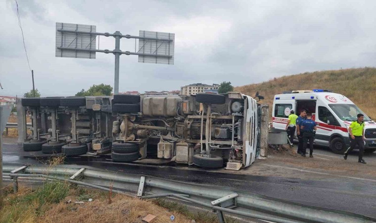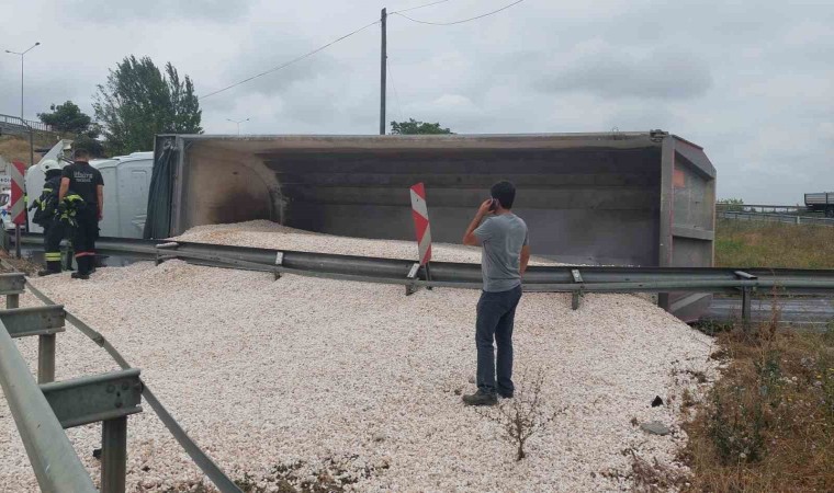 Tekirdağ’ın Süleymanpaşa ilçesinde mıcır yüklü tır devrildi. Tırın sürücüsü yaralandı.
