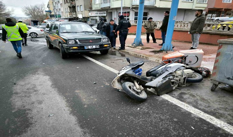 Kaza, ilçeye bağlı Camiatik Mahallesi Atatürk Bulvarı üzerine meydana geldi. Edinilen bilgiye göre, mahalle muhtarı Hüseyin T. (59) idaresindeki 59 LK 876 plakalı açık kasa kamyonet, Tarım Kredi Sokağı’na dönmek istediği sırada arkasından gelmekte olan özel bir firmaya ait kurye çalışanı Vural B.’nin kullandığı 59 AGT 740 plakalı motosiklet çarptı. Çarpışmanın etkisiyle motosiklet sürücüsü meydana gelen kazada yaralandı.