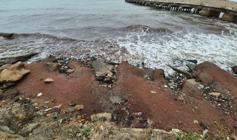 Tekirdağ kıyılarında poyraz fırtınasıyla birlikte yoğun kızıl yosun birikintileri yeniden görüldü.
