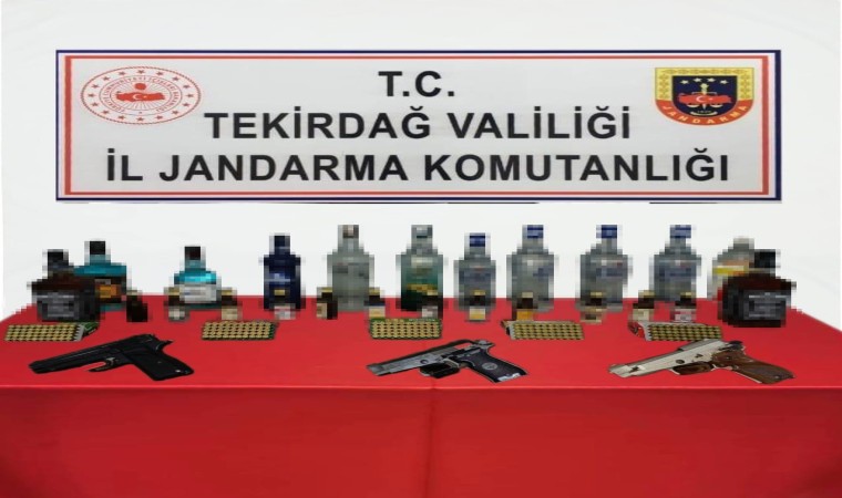 Tekirdağ’da jandarma ekiplerince yapılan çalışmalarda ruhsatsız silah, muşta ve kaçak içki ele geçirildi.