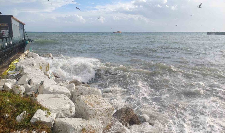 Fırtına sebebiyle dev dalgalar kıyıları dövmeye devam ediyor. Dalgaların etkisiyle kıyılarda denizin aşırı çalkalanmasından dolayı yer yer denizin rengi değişti.