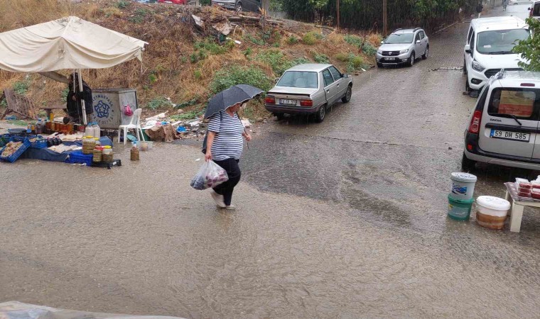 Tekirdağ’da etkili olan şiddetli yağış, Süleymanpaşa’da kurulan Salı Pazarı’nı adeta dereye çevirdi. Pazar alanında su birikintileri oluşurken, esnaf ve vatandaşlar zor anlar yaşadı.