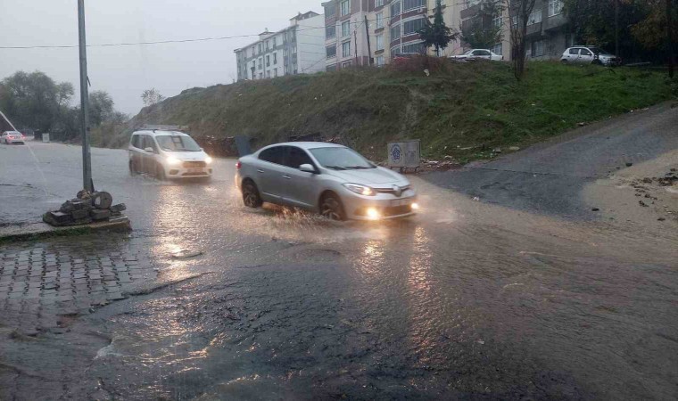 Tekirdağ’da bir anda bastıran şiddetli yağış, sokakları dereye çevirdi.