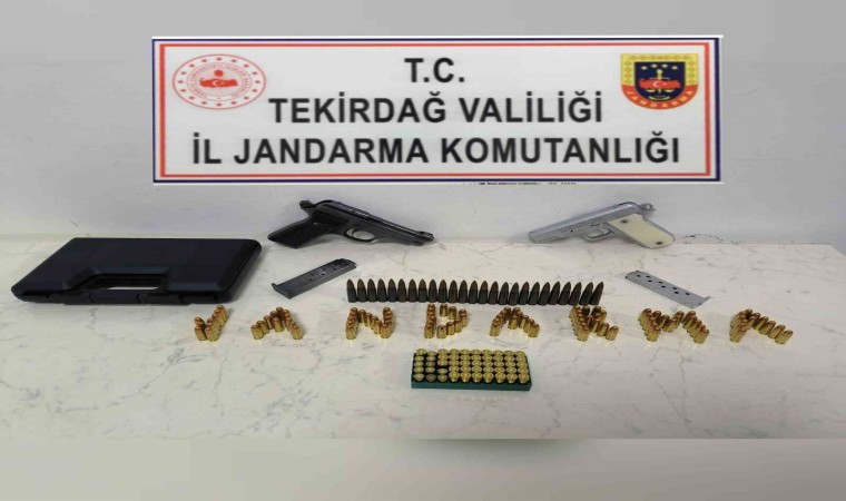 Çerkezköy ilçesi Kızılpınar Mahallesinde iki adreste yapılan aramada 2 adet tabanca, 149 adet tabanca mermisi, 25 adet kalaşnikof mermisi ele geçirildi.