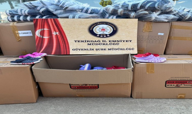 Tekirdağ İl Emniyet Müdürlüğünce Tekirdağ Cumhuriyet Başsavcılığı ile koordineli olarak yapılan iş yeri aramasında, Süleymanpaşa ilçesi Vatan Mahallesinde faaliyet gösteren bir işyerinde ünlü markaların taklidi olan toplam 1382 çift terlik ele geçirildi.