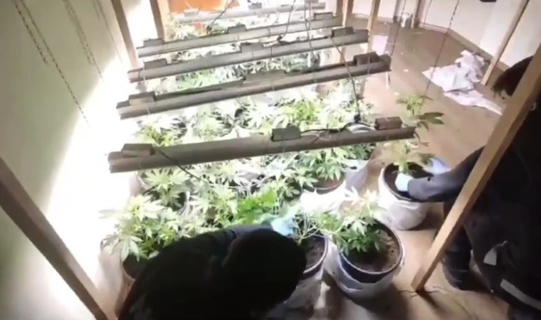 Ekipler bir adrese yaptığı operasyonda 104 kök Hint keneviri, 2 kilo 805 gram kurutulmuş esrar, 2 adet hassas terazi, 6 adet mekanik saat, 24 adet led aydınlatma ışığı, vantilatör, 4 kutu sıvı gübre, 1 kutu sıvı solucan gübresi, 2 adet buhar makinası, 1 adet pH ölçer, uyuşturucu madde dağıtımında kullanıldığı değerlendirilen alüminyum folyo, kenevir yetiştirilen toprağından ayrılmış 95 adet saksı ve saksıya geçirilmiş poşetler ele geçirildi.