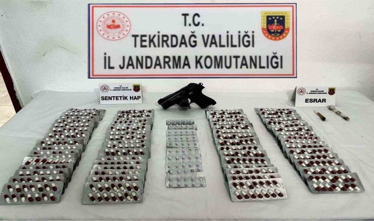 Tekirdağ İl Jandarma Komutanlığınca Süleymanpaşa ilçesi Çiftlikönü Mahallesinde bir evde bulunan E.P., S.B., ve Ş.G. isimli şahısların yapılan aramasında, 1041 adet sentetik ecza, 1 adet ruhsatsız tabanca, 1 adet tabanca şarjörü, 5 gram esrar, 1 adet uyuşturucu kullanma aparatı ele geçirildi.