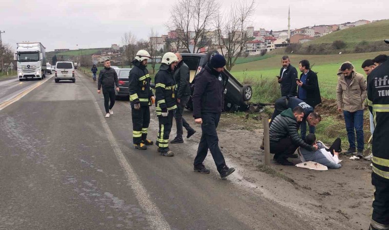 Şarampole sürüklenerek ters dönen araçta sürücü T.Ç. ve yolcu F.Ç. yaralandı. Yaralılar, olay yerine gelen sağlık ekiplerinin ilk müdahalesinin ardından ambulansla Çorlu Devlet Hastanesi’ne kaldırılarak tedavi altına alındı.