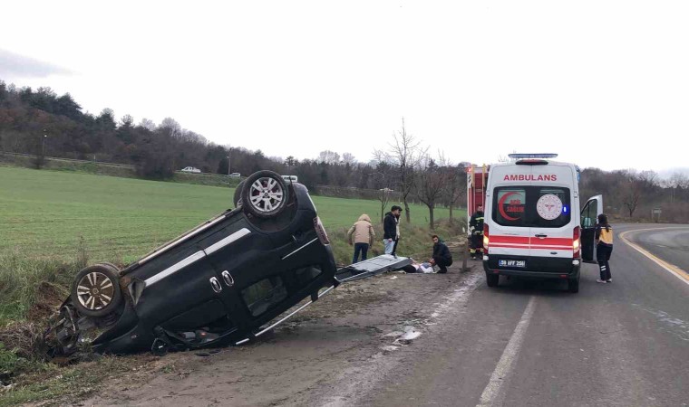 Tekirdağ Çorlu’da viraja girerken takla atan hafif ticari araç şarampole sürüklendi. Kazada yaralanan 2 kişi hastaneye kaldırıldı.