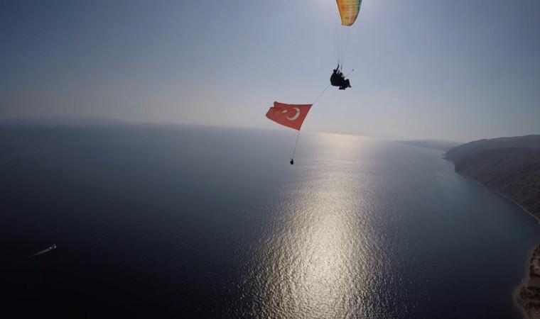 Tekirdağ’da Cumhuriyet Bayramı’nın 101. yılı kutlamaları kapsamında yamaç paraşütçüleri, Ganos Dağı’ndan havalanarak Türk bayrağı ile 20 dakikalık bir uçuş gerçekleştirdi.