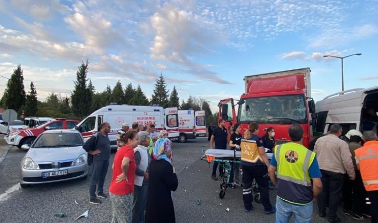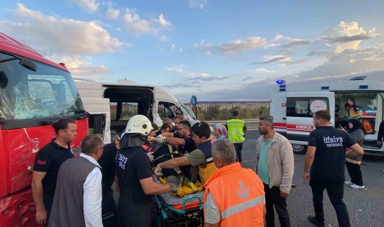 Tekirdağ’ın Ergene ilçesinde U dönüşü yapan yolcu minibüsüyle kamyonun çarpışması sonucu meydana gelen kazada 6 kişi yaralandı.