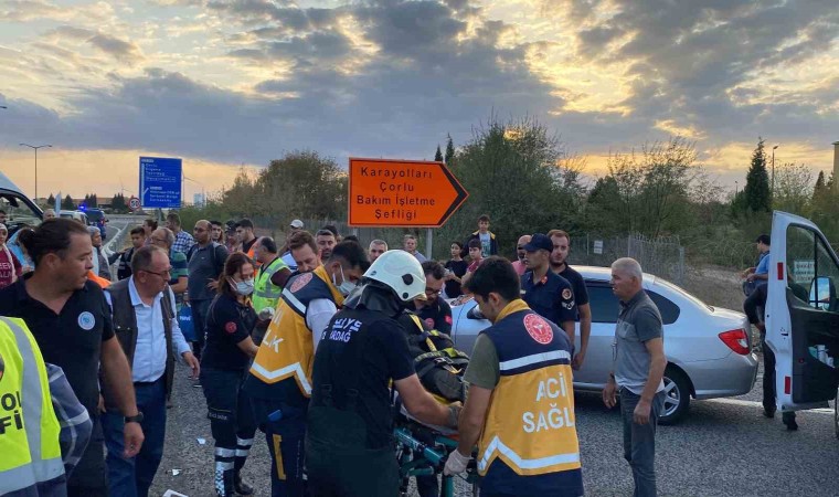 Kaza, Velimeşe Mahallesi Avrupa Otoyolu üzeri Karayolları Çorlu Bakım İşletme Şefliği karşısında meydana geldi. Edirne istikametine seyreden Kemal T. idaresindeki kamyon, yol ayrımında U dönüşü yapan Ahmet Ç. yönetimindeki yolcu minibüsüyle çarpıştı. Kazada minibüsteki 6 kişi yaralandı. Kaza sonrası olay yerine çok sayıda ambulans ve itfaiye sevk edildi. Minibüste sıkışan bir kişi itfaiye ekiplerinin müdahalesiyle sıkıştığı yerden çıkarıldı. Kazada yaralanan S.P., R.O., Ü.K., M.K., S.K. ve 1 yabancı uyruklu kişi olay yerine gelen ambulanslarla çevredeki hastanelere kaldırıldı.