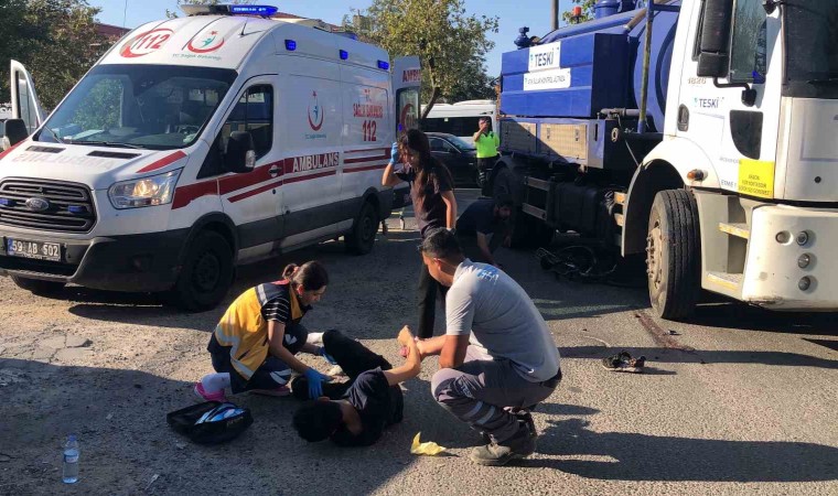 Tekirdağ Çorlu’da ’Kuka’ olarak adlandırılan Tekirdağ Büyükşehir Belediyesi Su ve Kanalizasyon İdaresi’ne ait (TESKİ) kanal açma aracının altında ezilen 15 yaşındaki yabancı uyruklu bisikletli çocuğun ayağı koptu.