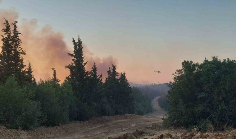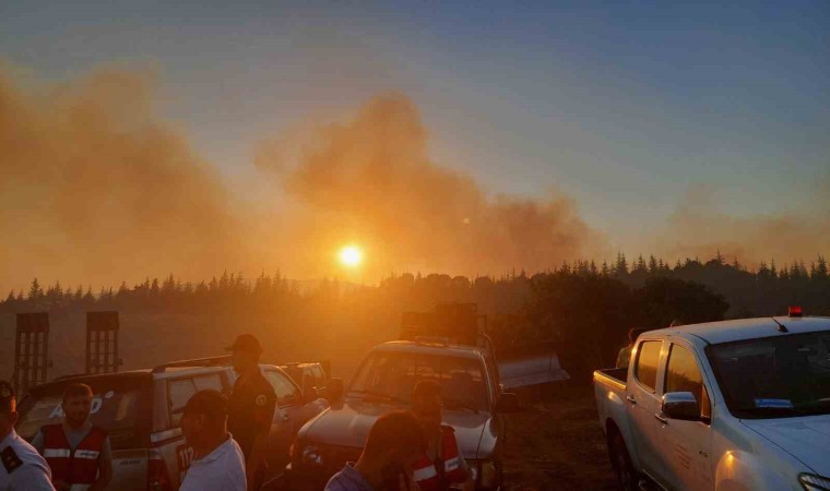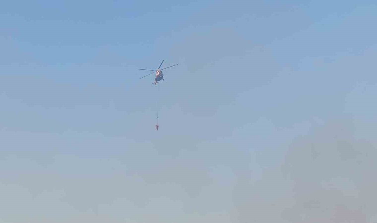 Tekirdağ’da çıkan orman yangınına yangın söndürme helikopterinin havadan desteği ile müdahale sürüyor.
