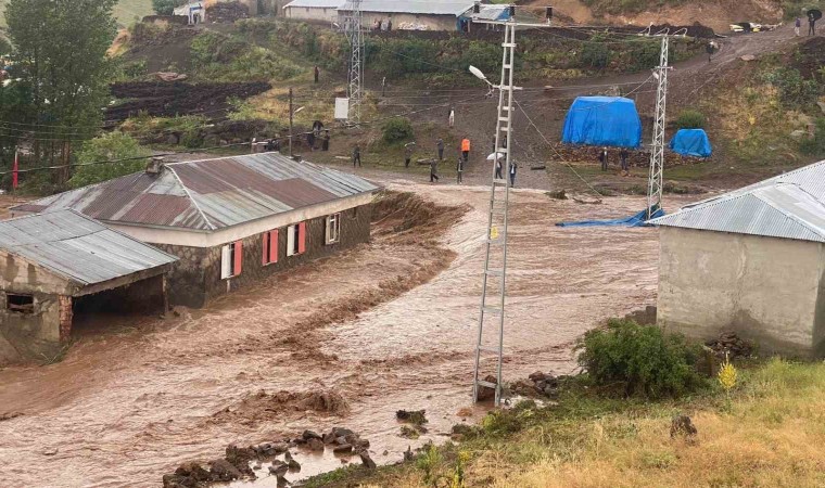 Erzurum’un Tekman ilçesinde etkili olan sağanak yağış birçok mahallede sele neden oldu.