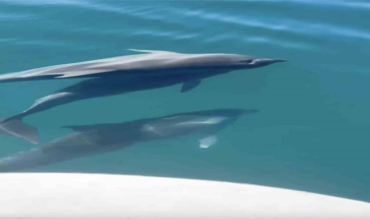 Balıkçılar, tekne ile yarılan yunusların gösterisini cep telefonları ile görüntüledi. Sosyal medyada paylaşılan görüntüler büyük ilgi gördü.