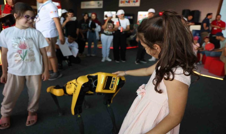 Sanayi ve Teknoloji Bakanlığının standında TEKNOFEST ziyaretçileri ile buluşan robot Mext, köpeğe benzer tasarımı ile herkesin sevgisini kazandı. Robot Mext’i sevmek isteyen onlarca kişi adeta birbiriyle yarıştı.