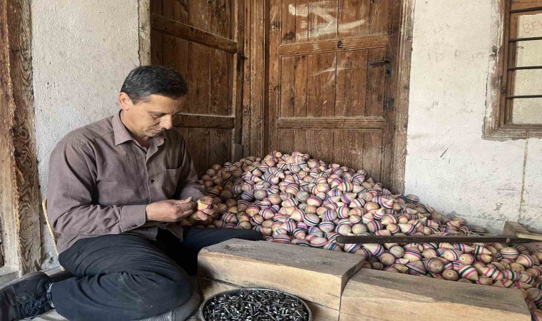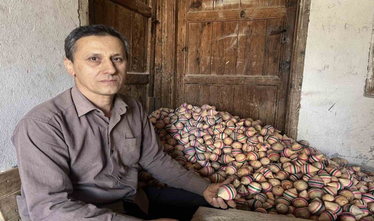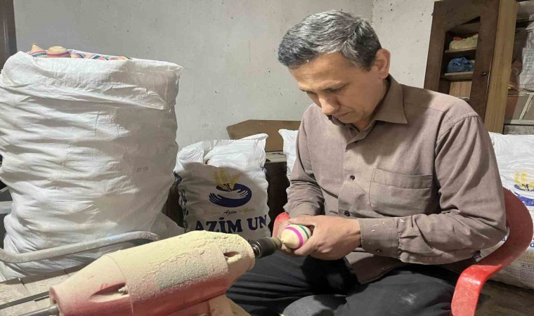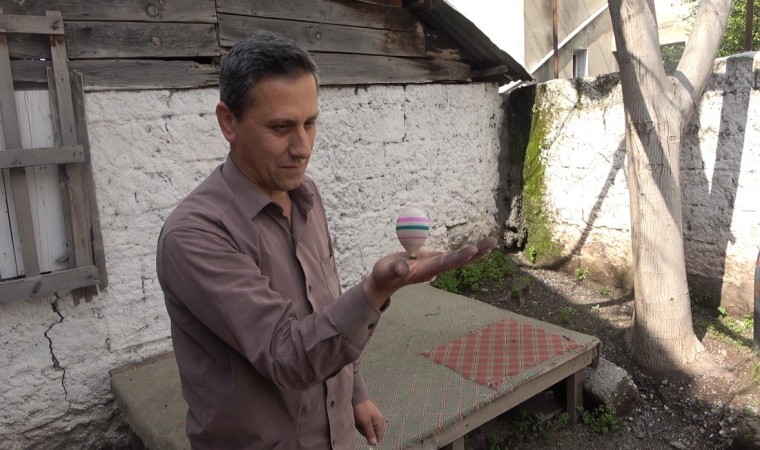 Osmaniye’de unutulmaya yüz tutmuş geleneksel oyunlardan olan topacı gelecek nesillere taşımak isteyen Bekir Altay, 25 yıldır evinin bahçesinde ahşaba şekil veriyor.