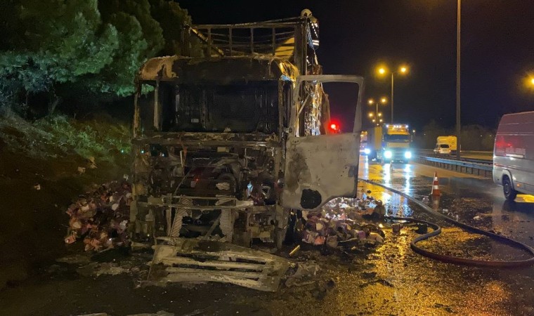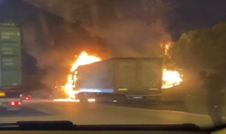 Kocaeli TEM Otoyolu’nda seyir halinde olan iç çamaşırı yüklü tır alevlere teslim oldu.