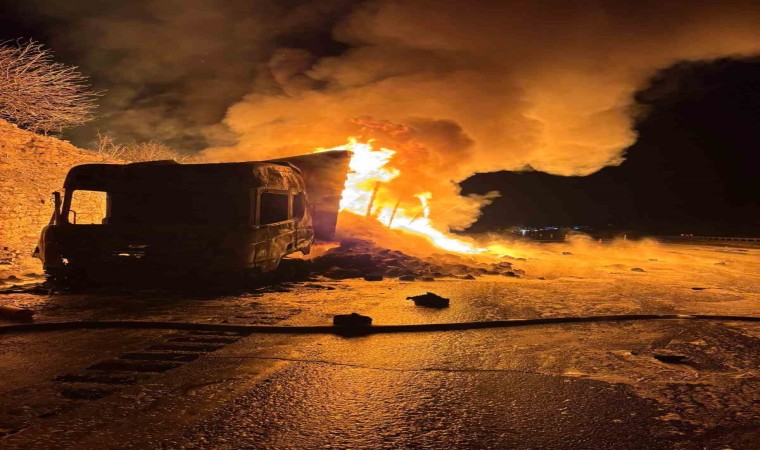 Mersin’in Tarsus ilçesinde seyir halindeyken yangın çıkan tekstil malzemesi yüklü tır kullanılamaz hale geldi.
